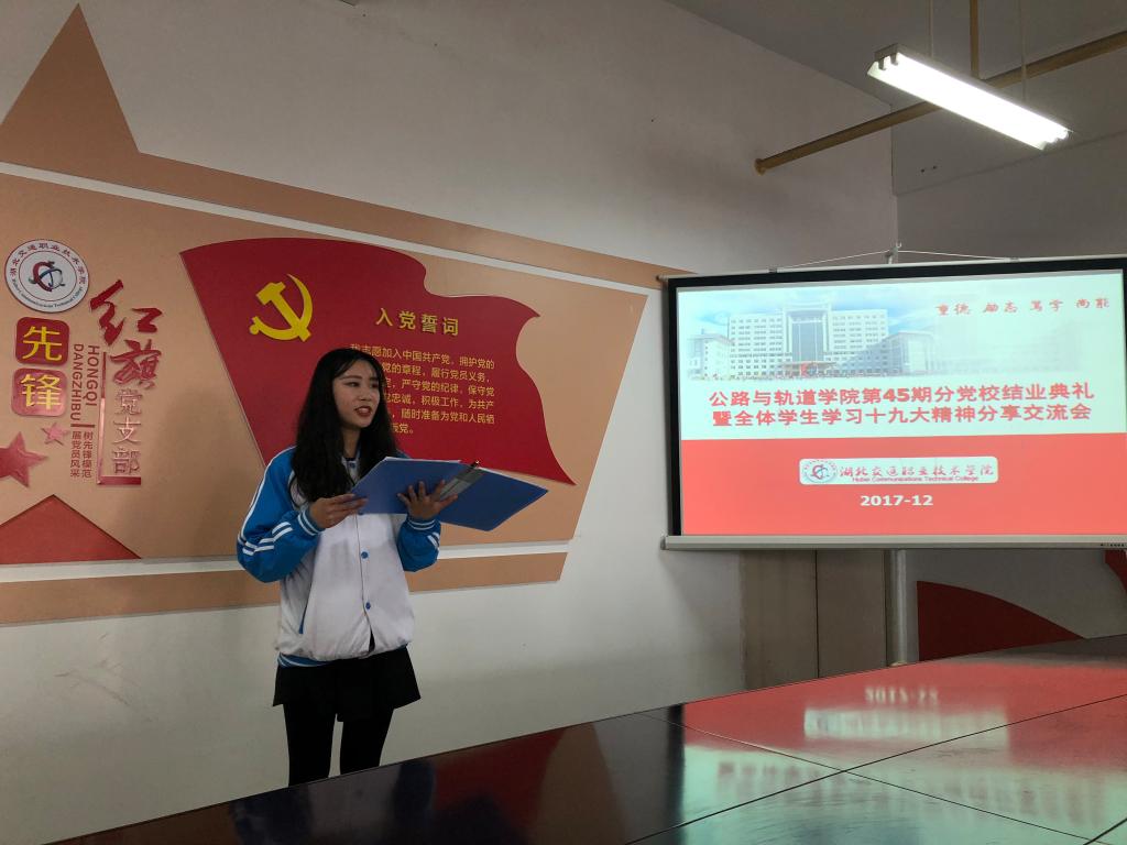 活动上学生支部书记沈力总结了本期党校的培训情况,并宣读了《关于表彰公路与轨道学院第45期分党校优秀学员的决定》,并发出“党许青年以未来,青年许党以奋斗”的呼吁。