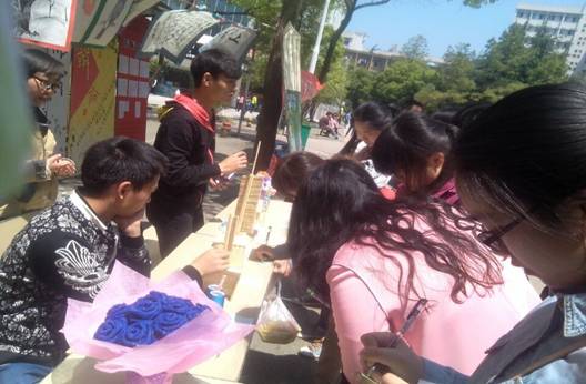 2015年4月14日,我院公路与轨道学院第六届手工艺制作大赛活动,在学院宣传长廊处进行展出并评比。此次活动由我院公路与轨道学院学生会生活部负责组织开展,目的在于培养广大同学的动脑、动手能力,引导大家发挥想象力、创造力,促进同学们之间的合作与交流。此次展出经历了活动前期的策划、宣传、启动和制作四个阶段。参与此次展出并进行普选投票的作品有做工齐整雄伟壮丽的帆船,有形象逼真栩栩如生的折纸玫瑰,有创意新奇制作精巧的大风车,有做工细致精巧美观鞭炮形状的中国结,有绿色环保废物利用制作而成的实用笔筒,有小巧精致做工精良的自行车模型等共计十二个手工艺制作品。
