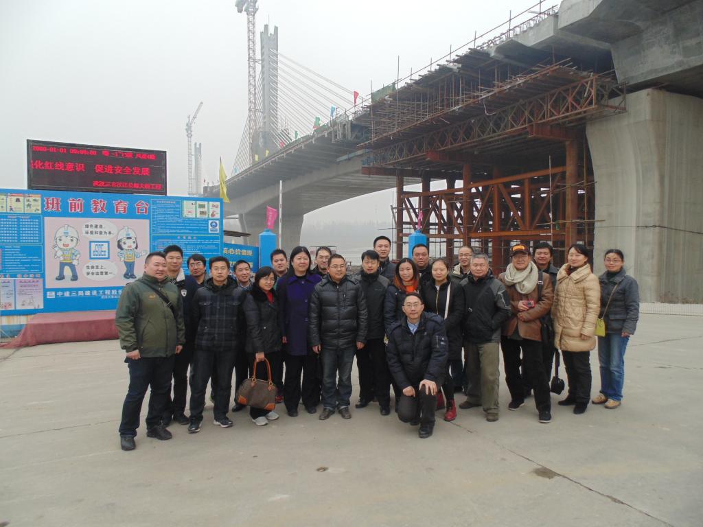 在学院与省公路管理局领导的支持下,1月26日,专业教师同省公路局建设处、养护处的同志联合组队,前往武汉三官汉江公路大桥和轨道交通6号线三标等重点工程开展参观学习活动。