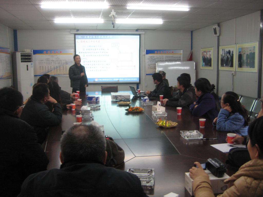 在长江二桥维修项目部,项目负责人赵兰海作为90级校友对于老师们的到来表示热烈欢迎,并在工地会议室详细介绍了长江二桥维修与加固的主要内容、施工难点、控制要点、技术亮点,让教师们有了一个总体认识。