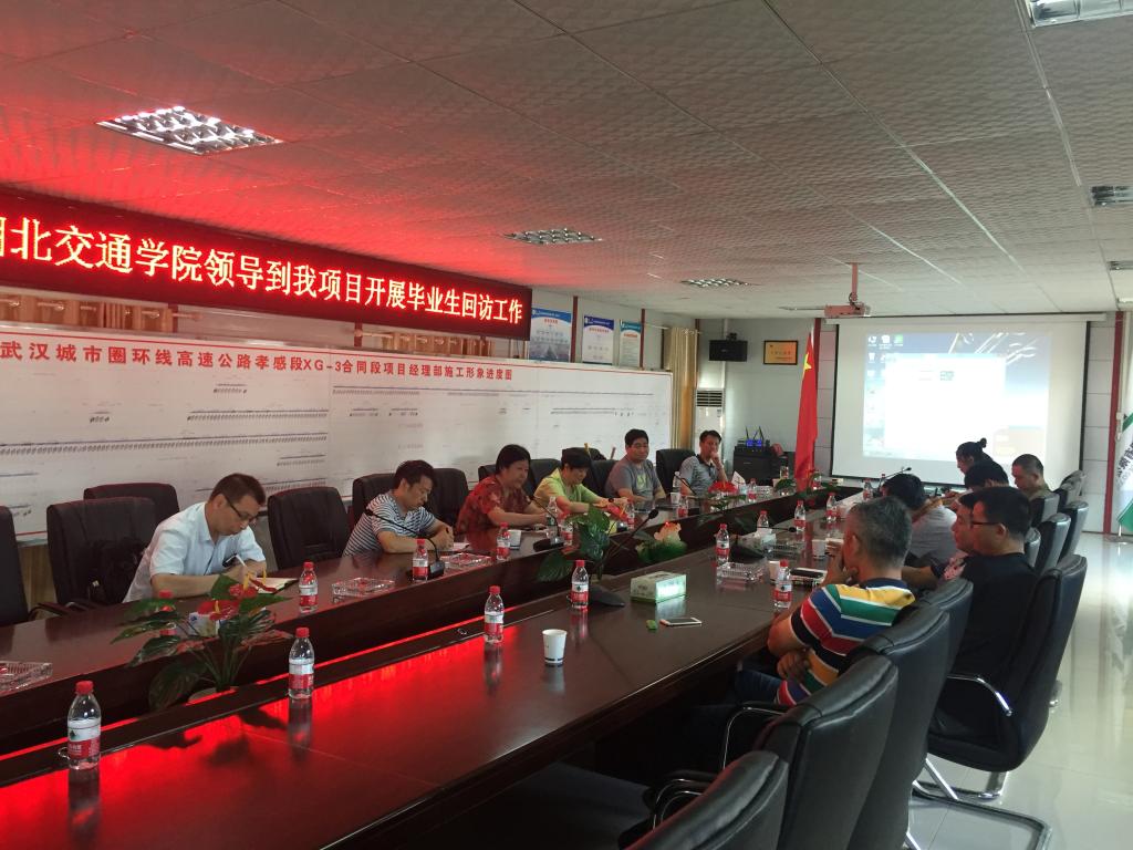 湖北省路桥集团有限公司是我校重要的的校企深度合作单位与实习实训基地,目前仅在武汉城市圈环线高速公路孝感段三标项目部实习、就业的我院学生就达60余人。教师们在项目现场与施工单位进行了深入交流,并看望了在施工现场的我校实习生及毕业生,实地了解他们的工作和生活等情况。